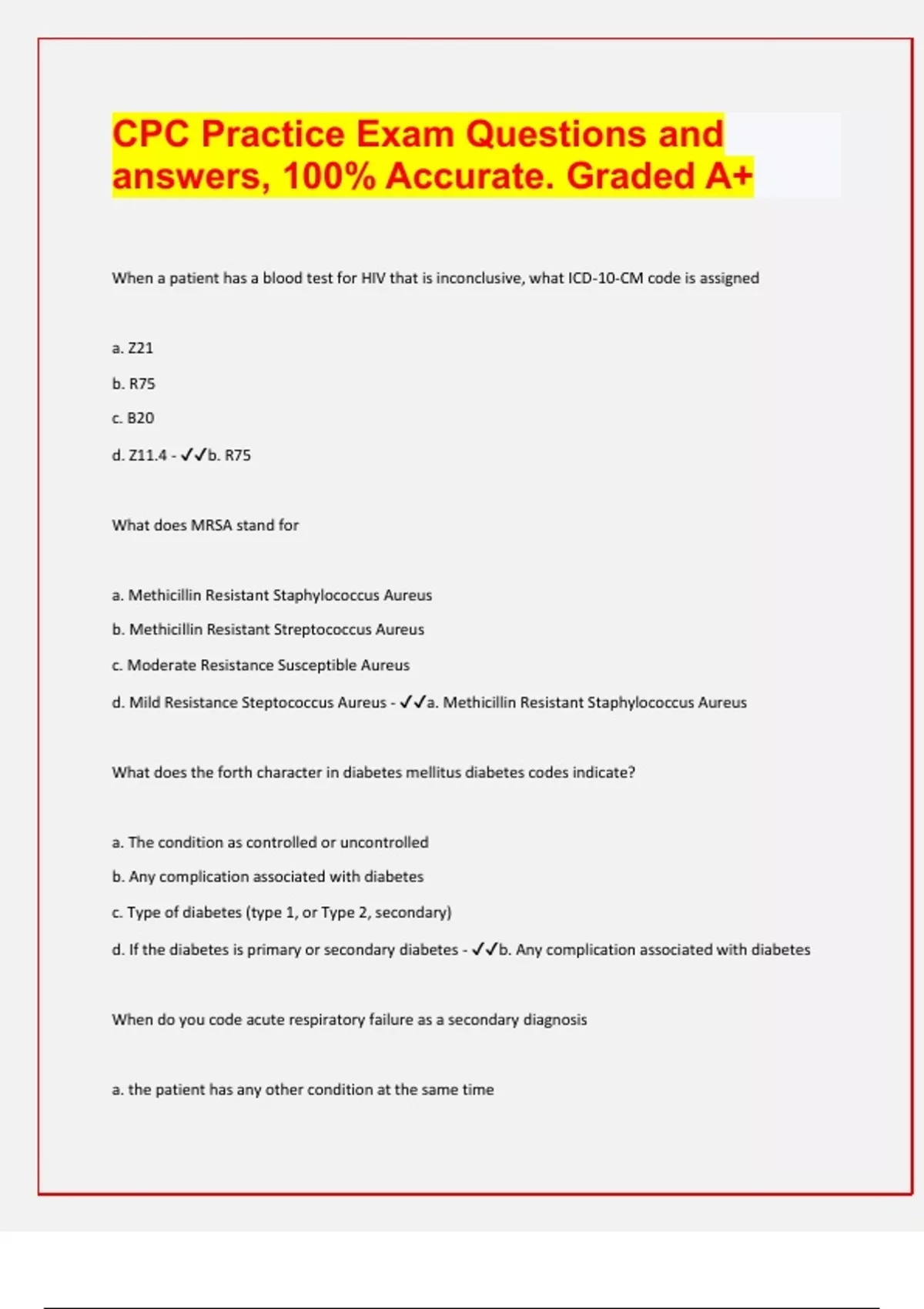 CPC exam- Practice Questions & answers. 100% Accurate. VERIFIED.