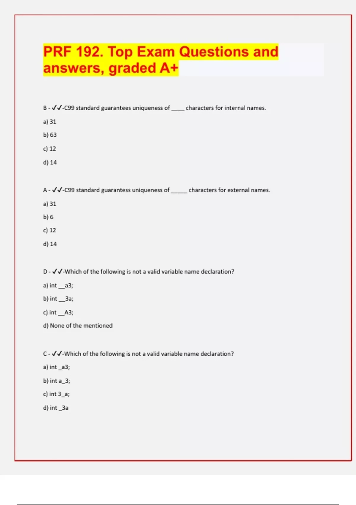 PRF 192. Top Exam Questions and answers, graded A+