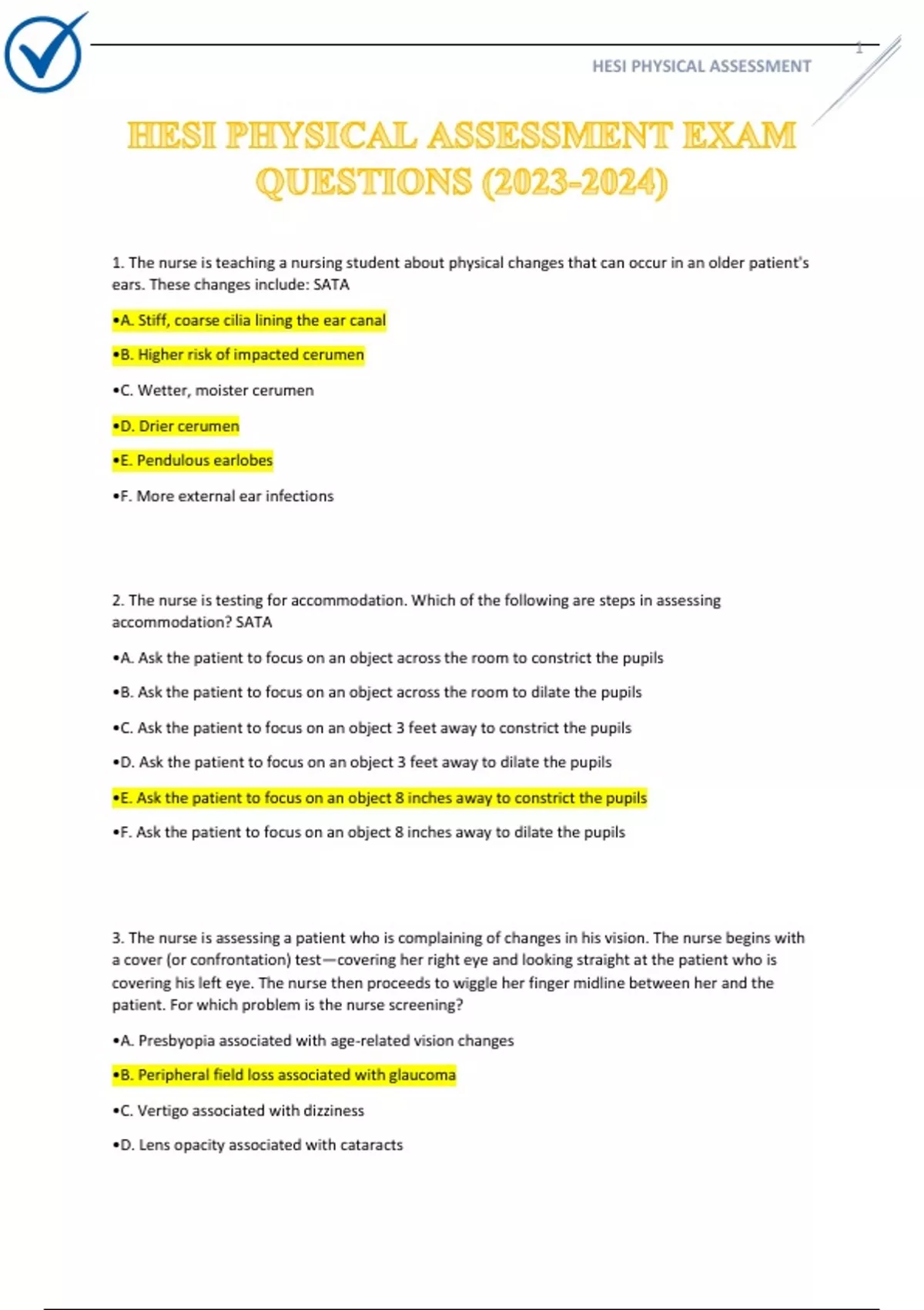 (Complete)Physical Examination and Health Assessment Questions and Answers| All Verified Answers| Guarantee A+ Score Guide ,(Complete)Physical Examination and Health Assessment Questions and Answers| All Verified Answers| Guarantee A+ Score Guide ,(Complete)Physical Examination and Health Assessment Questions and Answers| All Ve