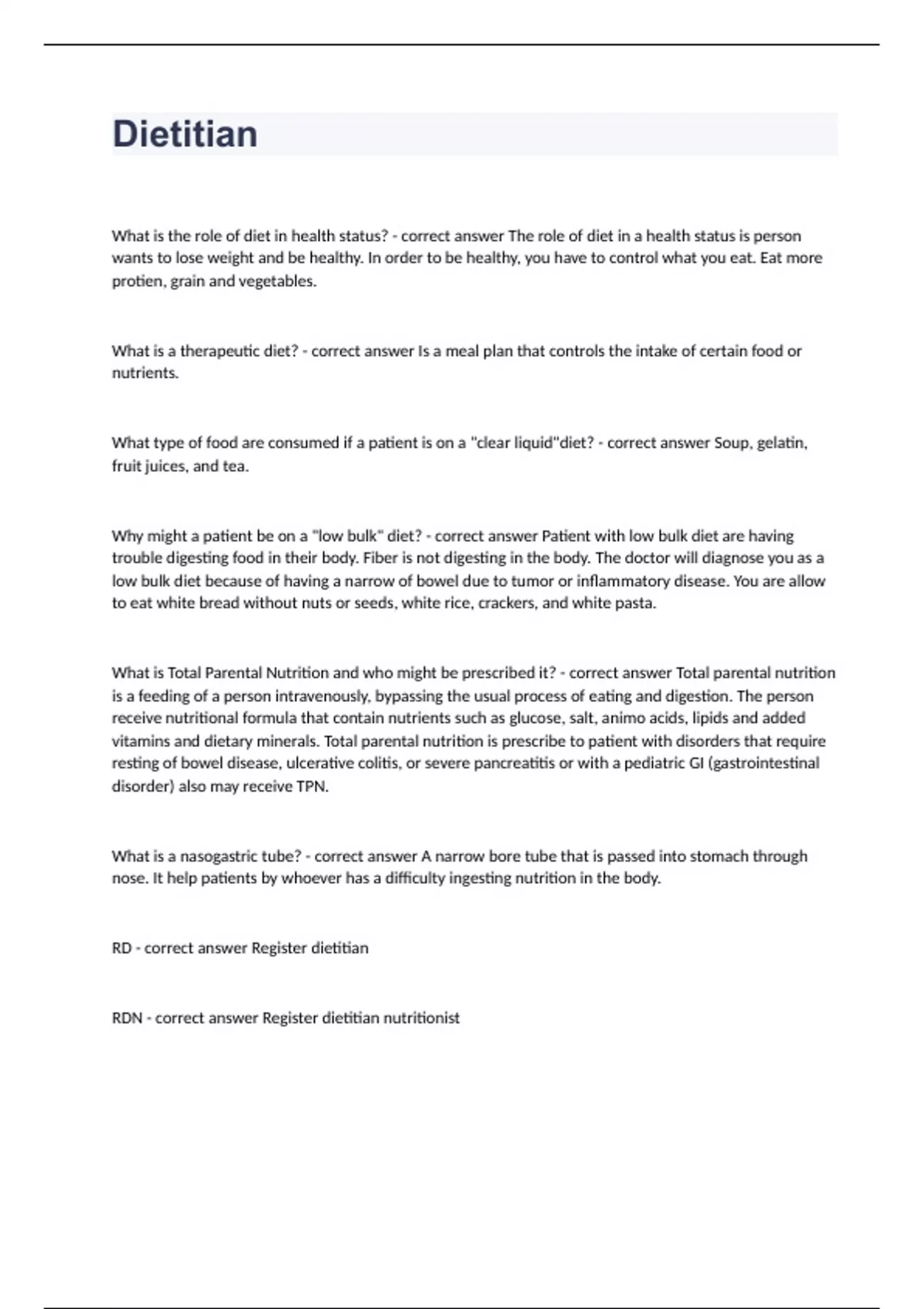 1 Exam (elaborations) Chapter 1 - DTC 108 fully solved graded A+ 2023 2 Exam (elaborations) Scope of Practice(question with 100% correct answers)2023 3 Exam (elaborations) Chapter 13 question n answers 2023 4 Exam (elaborations) Chapters 1-4 Diet and Nutrition question n answered 2023 5 Exam (elaborations) Dietetics Midterm questions well answe