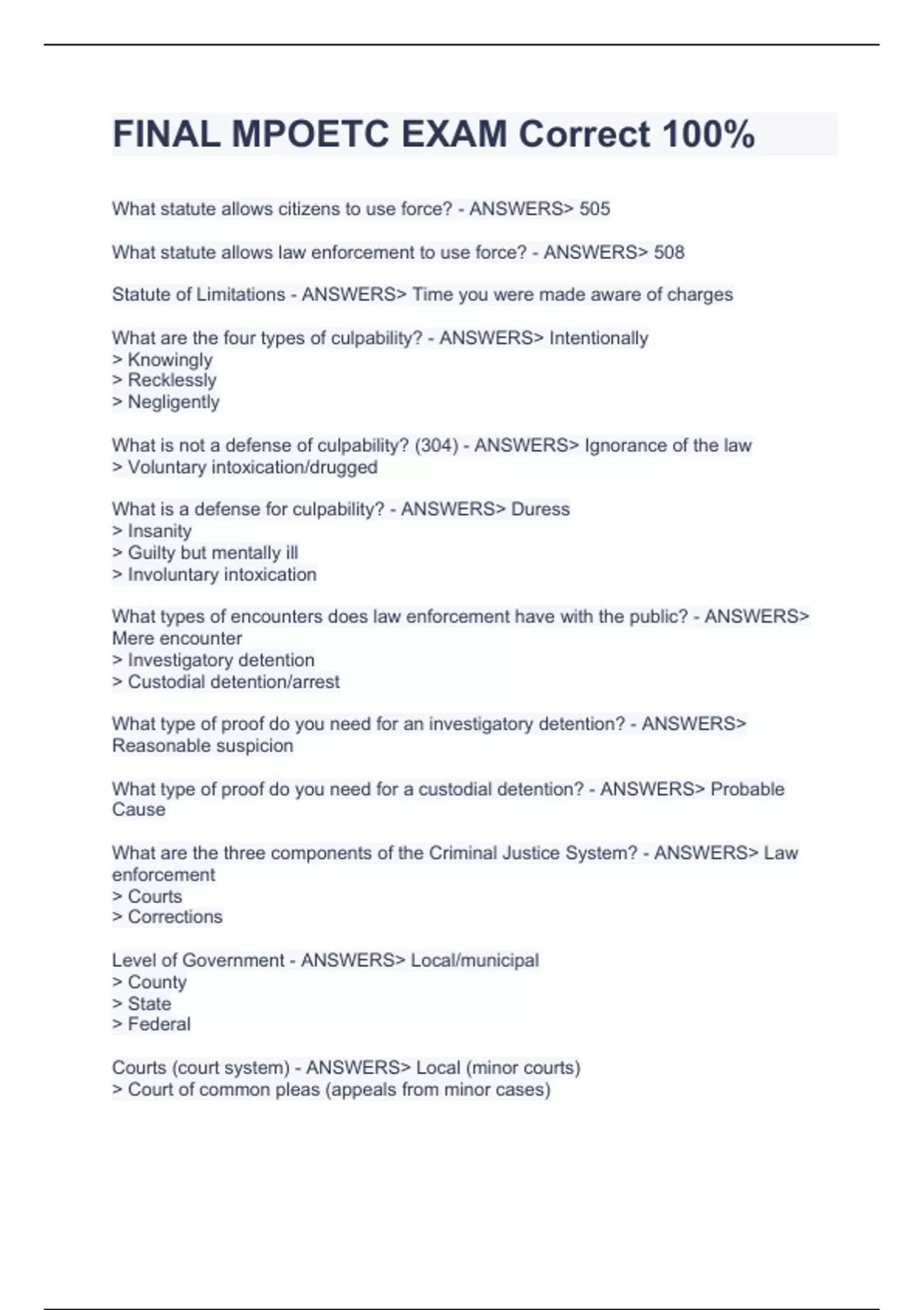 PACKAGE DEAL FOR MPOETC State Certification Study Set Correct 100%(COMPLETE FULL PACK SOLUTIONS)PACKAGE DEAL FOR MPOETC State Certification Study Set Correct 100%(COMPLETE FULL PACK SOLUTIONS)PACKAGE DEAL FOR MPOETC State Certification Study Set Correct 100%(COMPLETE FULL PACK SOLUTIONS)