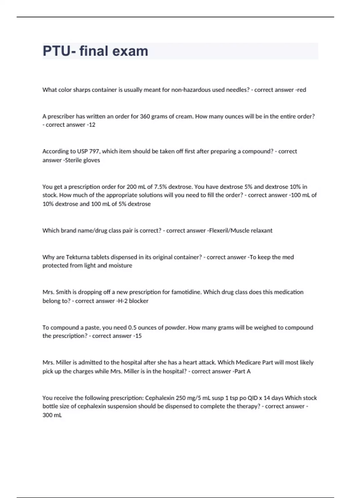 PTU FINAL EXAM 2023 WITH 100% CORRECT ANSWERS