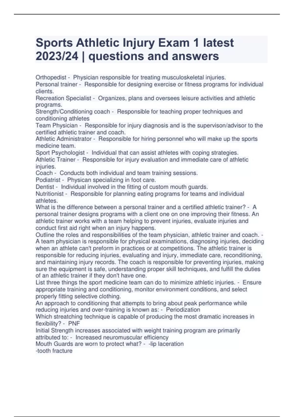 Sports Athletic Injury Exam 1 latest 2023/24 | questions and answers,Sports Athletic Injuries Exam 1,Sports Athletic Injuries: Exam 3 | complete ,First Aid/ CPR/ Sport Injuries: Test #1 | 100% verified questions and answers.