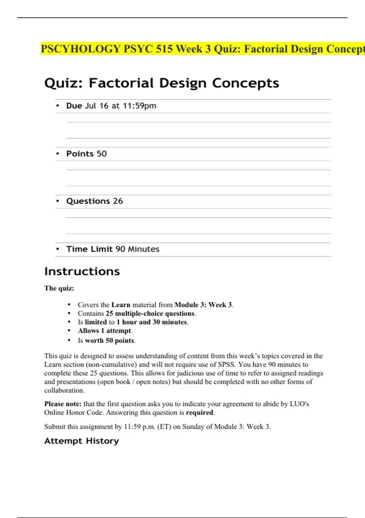 PSYC 515 Module 5: Week 5 Quiz: Non-parametric Tests Concepts 2023 worth 50 points PSYC 515 Research and Statistics II: Module 7 Quiz: Alternative Research Designs Concepts Fall 2023. PSYC 515 Week 4 Quiz: Scientific Writing Concepts Fall 2023. PSYC 515 Quiz: Consuming Research Concepts Score for this quiz: 48 out of 50. PSYC 515 Research Methods