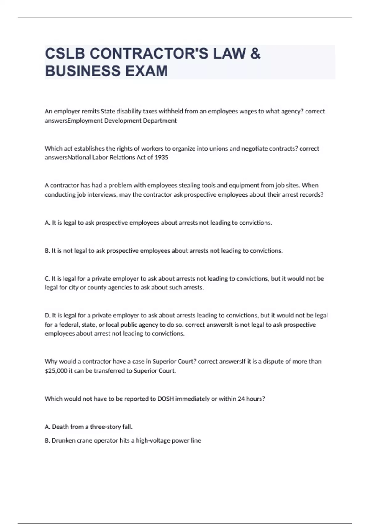 CSLB CONTRACTOR S LAW & BUSINESS EXAM 2023 WITH 100% CORRECT ANSWERS CSLB License Health & Safety Practice Test exam 2023 with 100% complete solutions