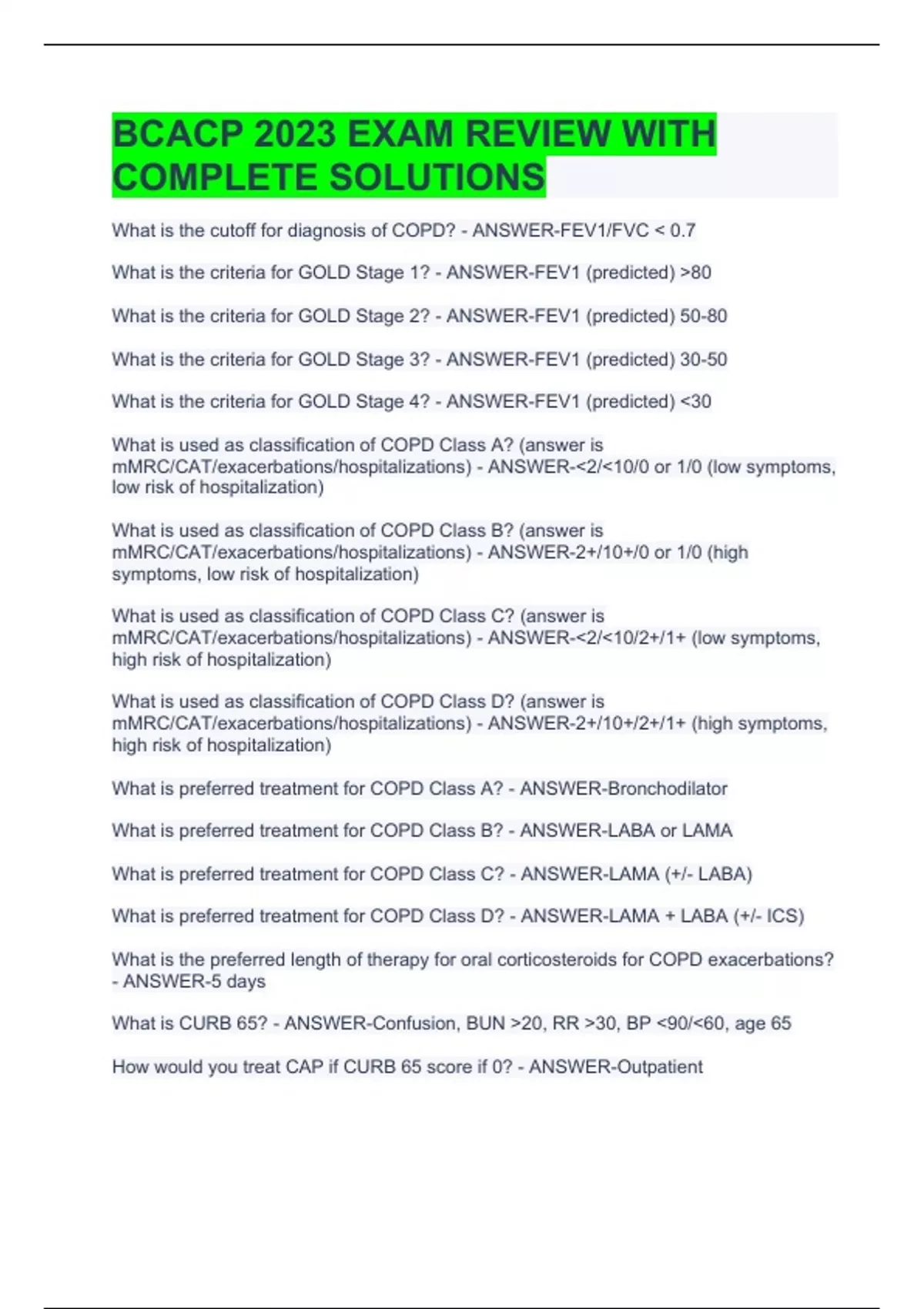 BCACP Exam Package Deal Full Solutions Pack