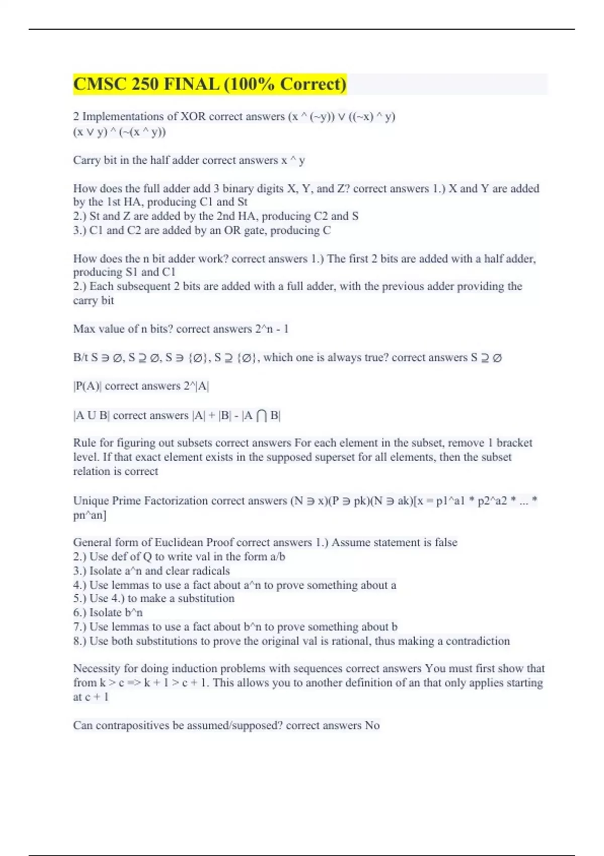 CMST 250 Exam 1 (100% Accurate) CMSC 250 FINAL (100% Correct) CMSC 250 - Midterm 1 Review (with Complete Solutions) CMSC 250 1.1 Propositional Logic (with 100% Errorless Answers) CMSC250 final notes (100% Verified)