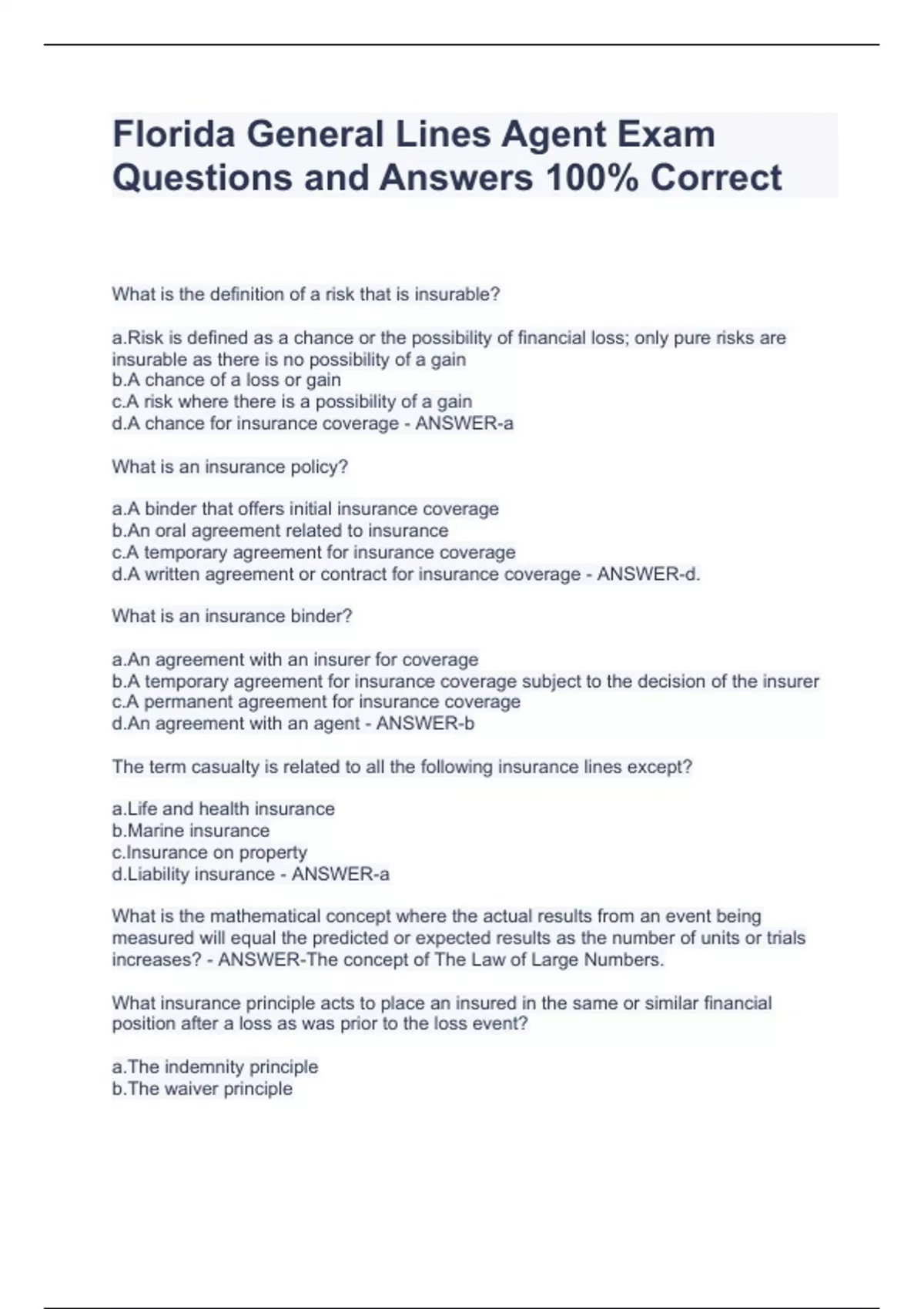 FL General Lines Exam STUDY BUNDLE| Complete Questions and Answers (Graded A)FL General Lines Exam STUDY BUNDLE| Complete Questions and Answers (Graded A)FL General Lines Exam STUDY BUNDLE| Complete Questions and Answers (Graded A)FL General Lines Exam STUDY BUNDLE| Complete Questions and Answers (Graded A)FL