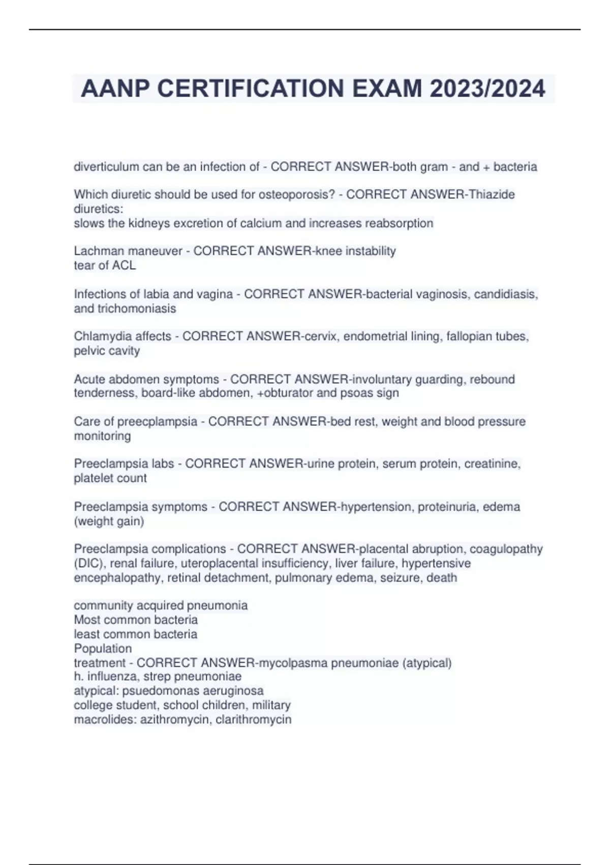 AANP STUDY QUESTIONS AND ANSWERS LATEST EXAM 2023/2024 AANP STUDY GUIDE EXAM TEST 2023/2024 QUESTIONS AND ANSWERS AANP REVIEW QUESTIONS AND ANSWERS EXAM (2023/2024) AANP QUESTIONS AND ANSWERS A+ GRADED EXAM LATEST AANP PRACTICE TEST EXAM 2023/2024 AANP EXAM STUDY GUIDE TEST Q&A 2023/2024 AANP EXAM 2023/2024 STUDY GUIDE