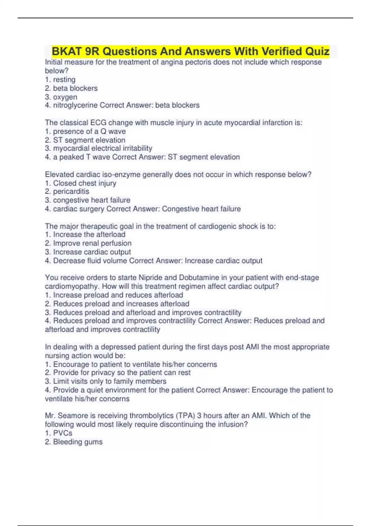 BKAT 9R Complete Package With Latest Solutions 2023 BKAT 9R Verified Questions And Answers With Latest Updates 2023 BKAT Med-Surg Questions And Answers With Latest Updates