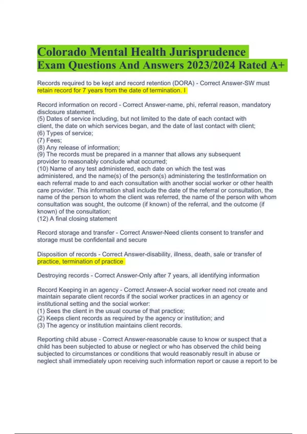 Colorado Mental Health Jurisprudence Exam Questions With Answers Latest Update 2023/2024 (Graded A+) & Colorado Mental Health Jurisprudence Exam Practice Questions And Answers | Latest Update 2023/2024 (Rated A+)