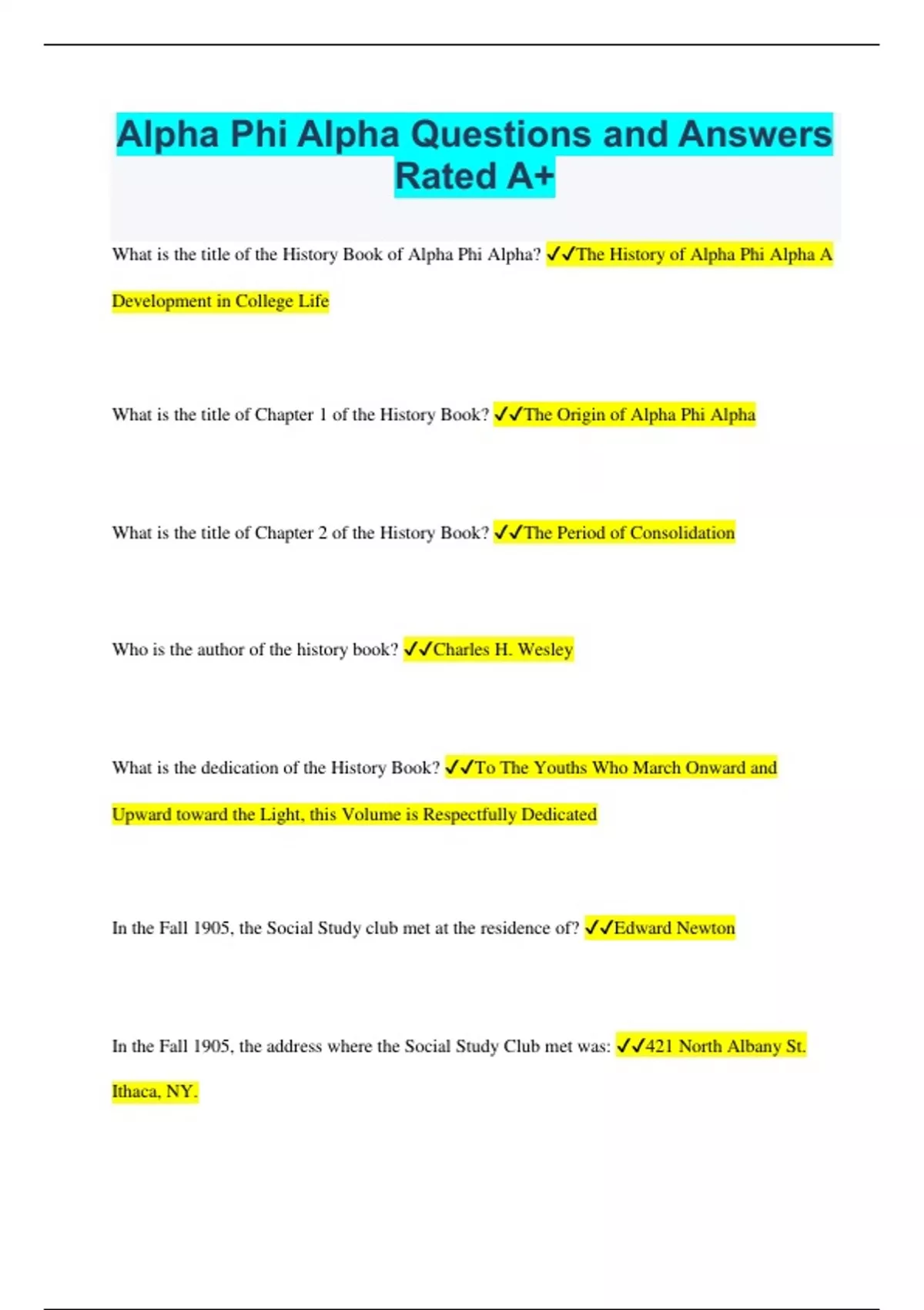 Alpha Phi Alpha Questions and Answers Rated A+