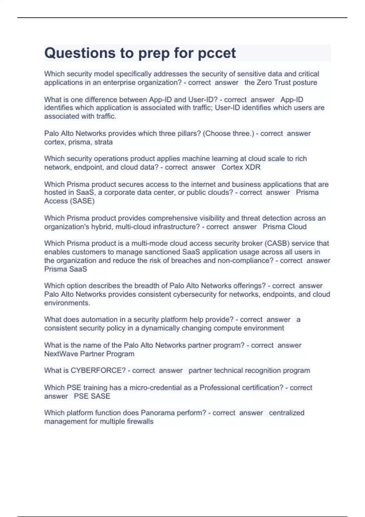 Justin PCCET Study Guide Part 1 Question and answers correctly solved 2023 Exam (elaborations) Justin PCCET Study Guide Part 1 Question and answers 2023 verified to pass Exam (elaborations) Justin PCCET Study Guide Part 2 Question and answers 2023 verified to pass Exam (elaborations) OKE Question and answers already passed 2023 Exam (elabor