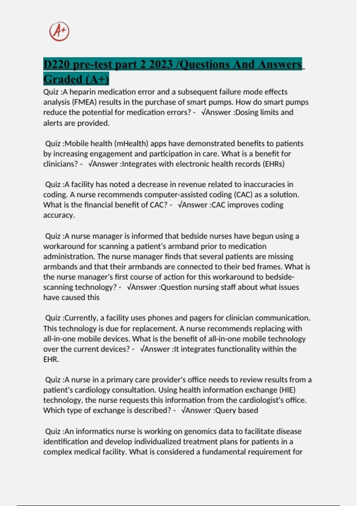 D220 Updated / Questions With Verified Answers Graded (A+)