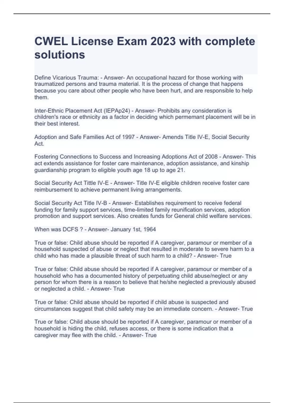 CWEL License Exam 2023 with complete solutions CWEL Exam 2023 Questions and Answers CWEL Exam 2023 with complete solutions Illinois CWEL Study Guide latest updated CWEL Exam 2023 Questions and Answers CWEL Exam with correct Answers (Graded A) CWEL STUDY GUIDE WITH COMPLETE SOLUTIONS CWEL Exam Questions and Answers 2023 CWEL Unit 2-5 Exam Questions
