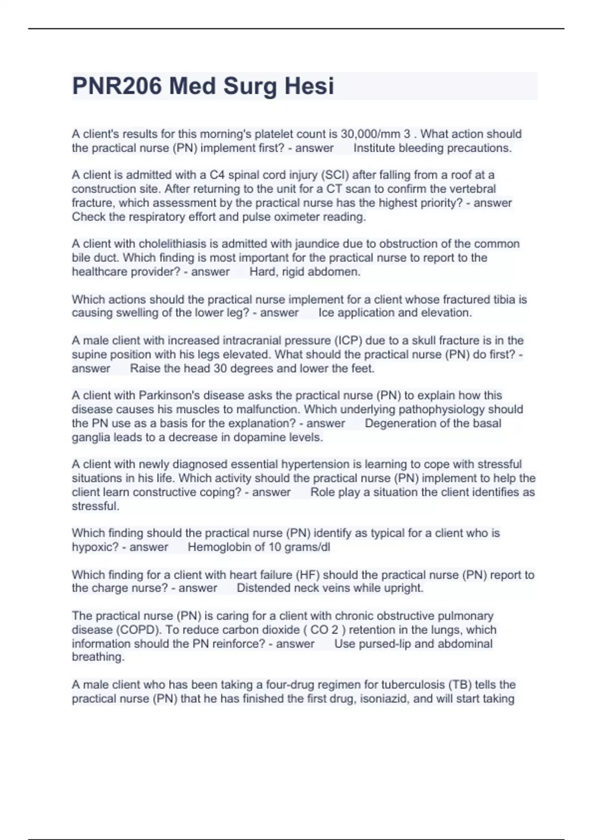 ATI PN MED SURGE TEST COMPILATION BUNDLE 100% ACCURATE