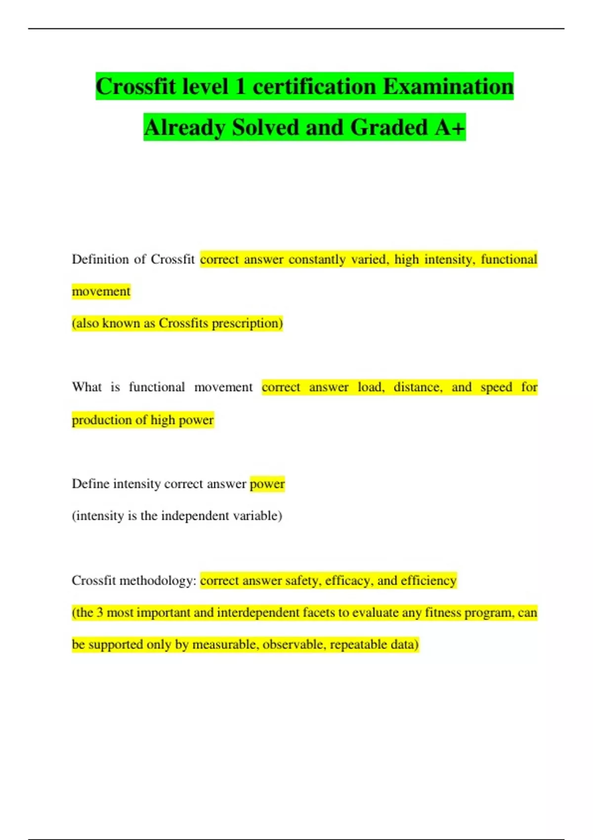 Crossfit level 1 certification Examination Already Solved and Graded A+