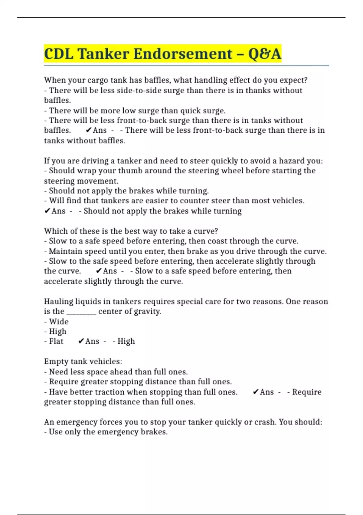PACKAGE::: CDL TANKER EXAMS