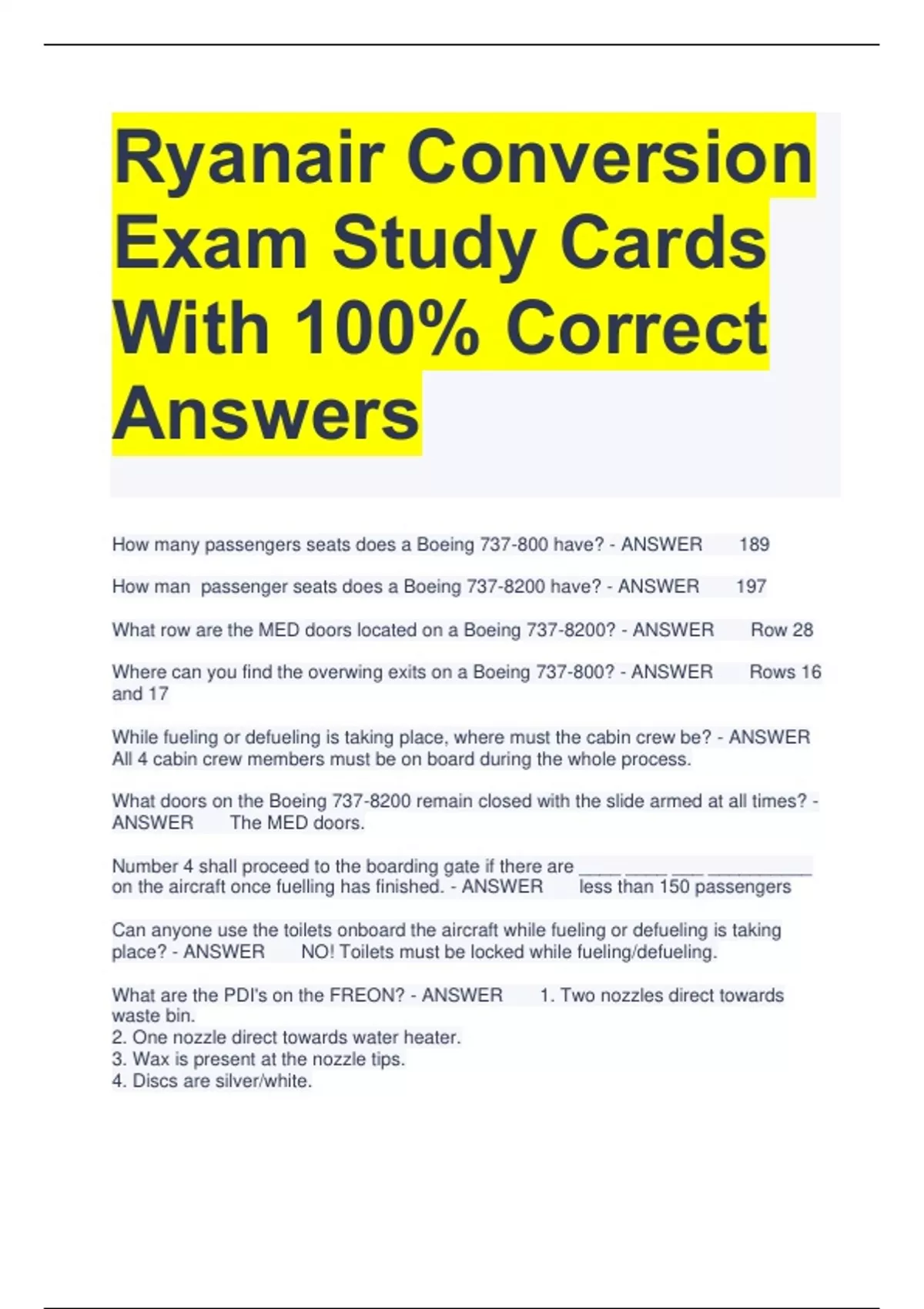 1 Exam (elaborations) Ryanair Initial Topic 2,3,4,5,6,7 Well highlighted Per Topic EXAM LATEST ACTUAL TEST BANK QUESTIONS AND CORRCT DETAILED ANSWERS|AGRADE 2 Exam (elaborations) Ryanair Initial Exam Test Bank Questions | With Complete Solutions 3 Exam (elaborations) RYANAIR CONVERSION - PDI s Actual Questions With All Correct Answe