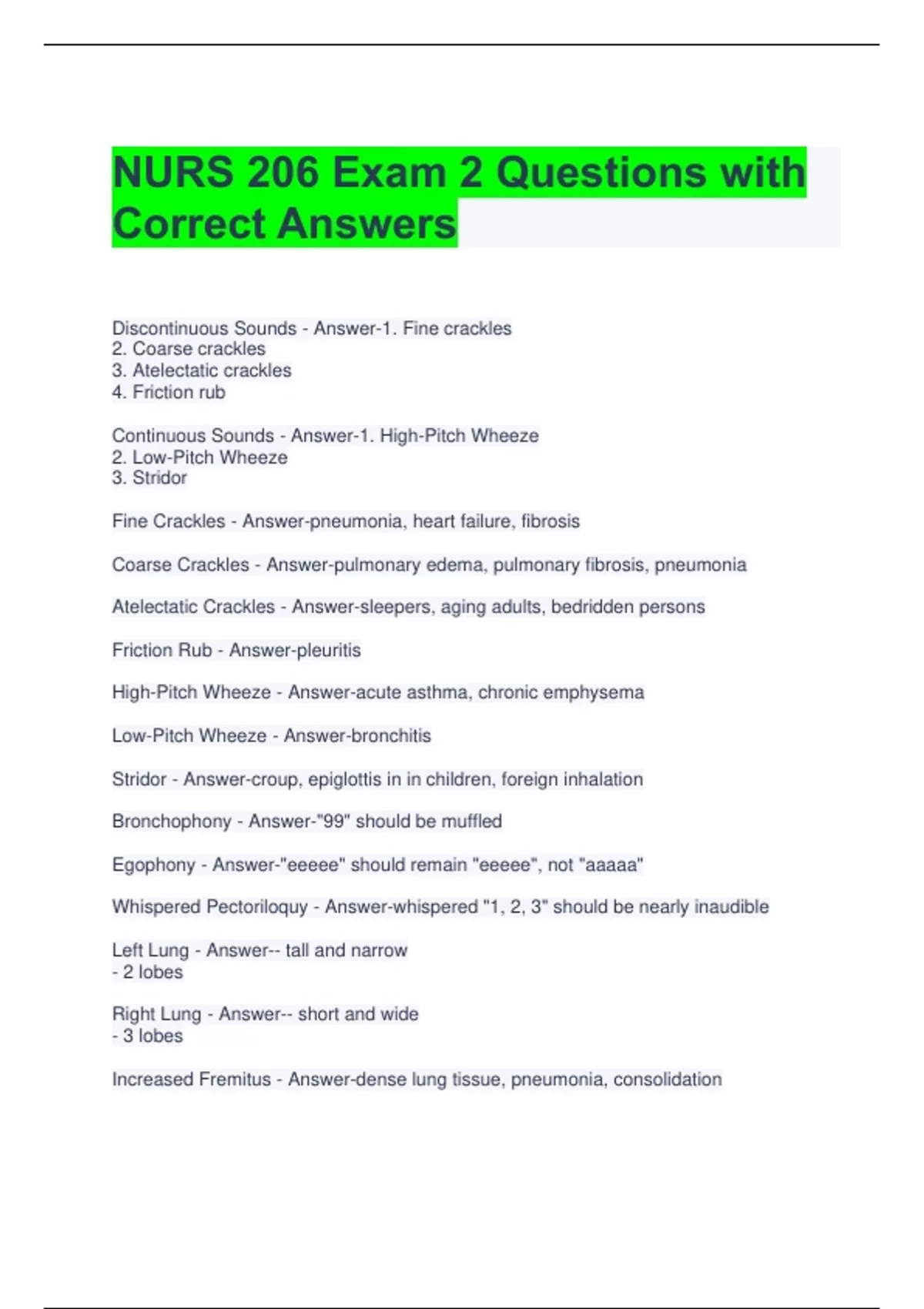 NUR 206 Exam 1 Questions with Correct Answers 2 Exam (elaborations) NUR206 Infection Control Exam Questions with Correct Answers 3 Exam (elaborations) NUR Exam Questions with All Correct Answers 4 Exam (elaborations) NUR 206 2023 Exam Questions with All Correct Answers 5 Exam (elaborations) NURS 206 Exam 2 Questions with Correct A