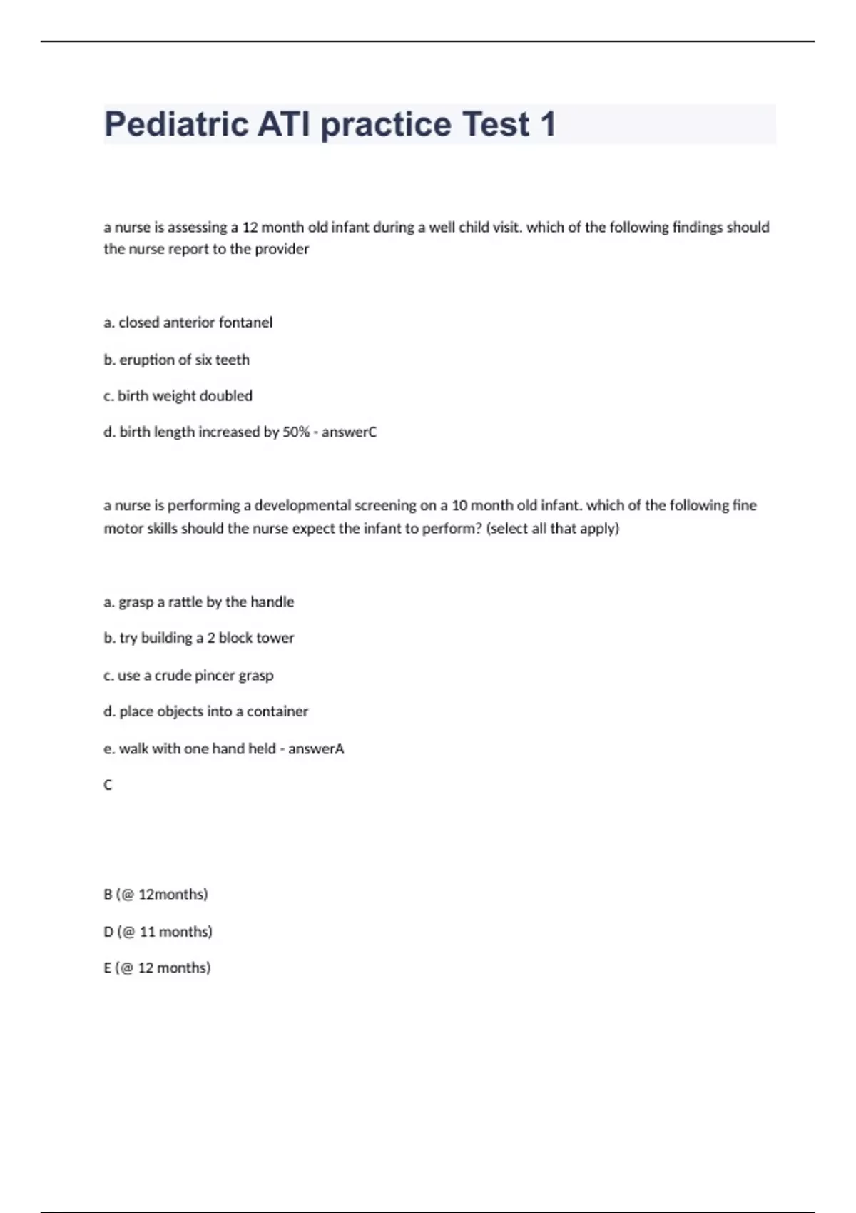 Package deal for a well Analysed PEDIATRICS ATI 2023.