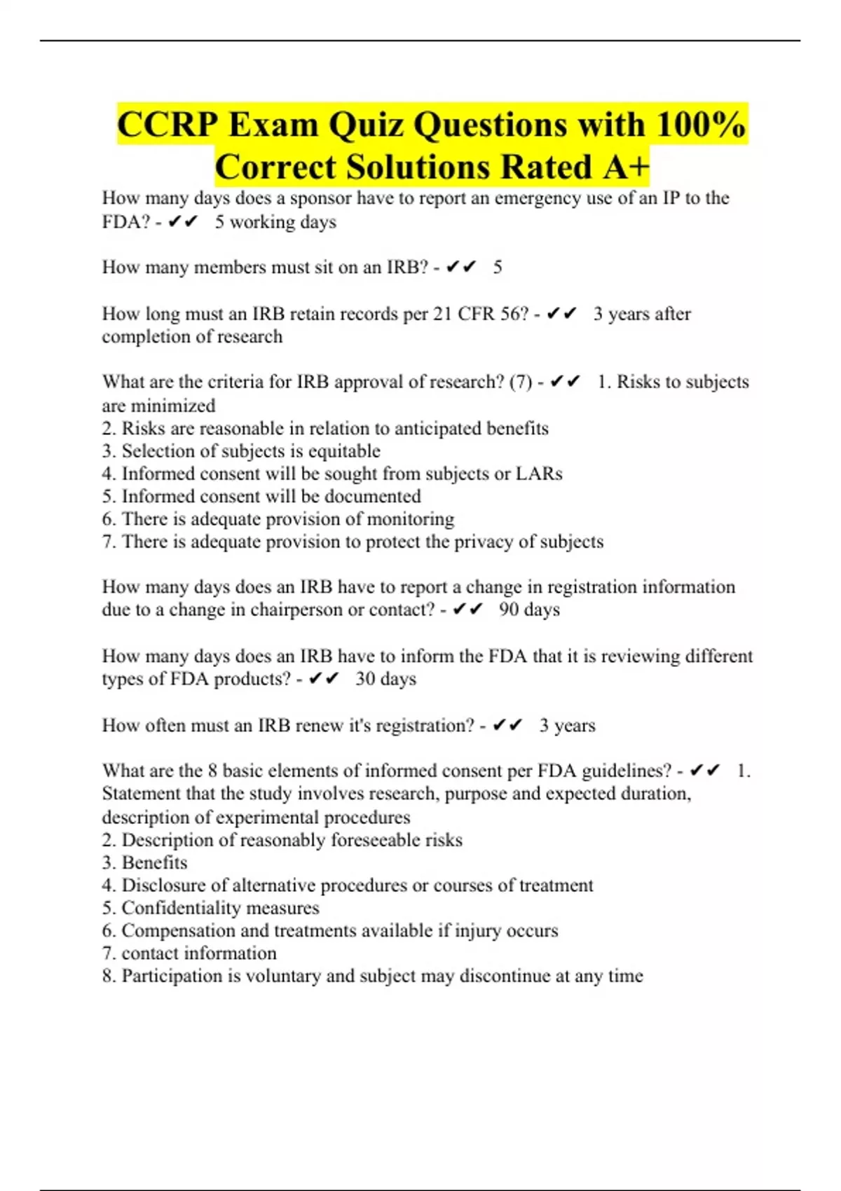 CCRP |SOCRA| AACVPR Exam Questions with Correct Solutions Exam Bundle