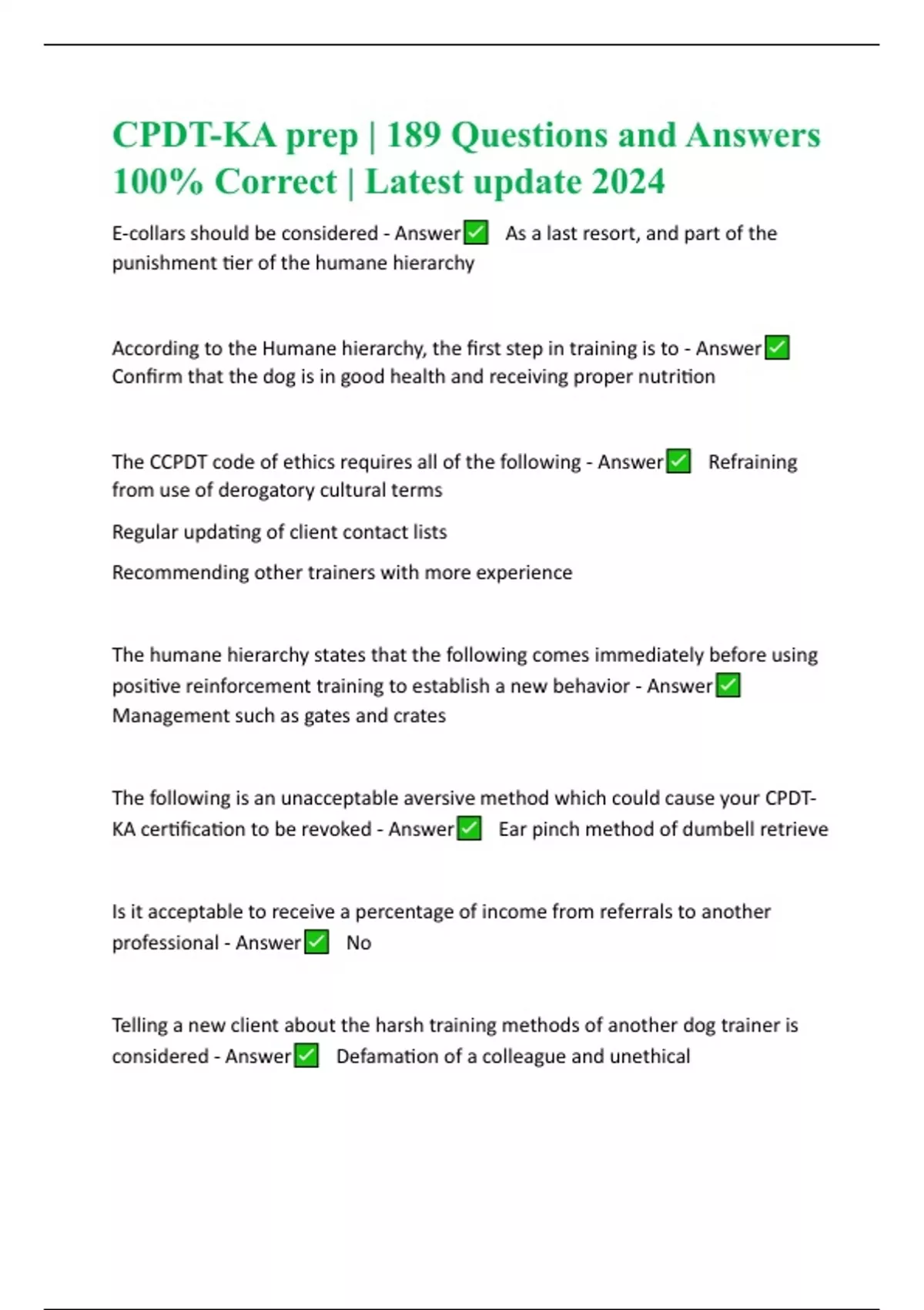 CPDT-KA prep | 189 Questions and Answers 100% Correct | Latest update 2024