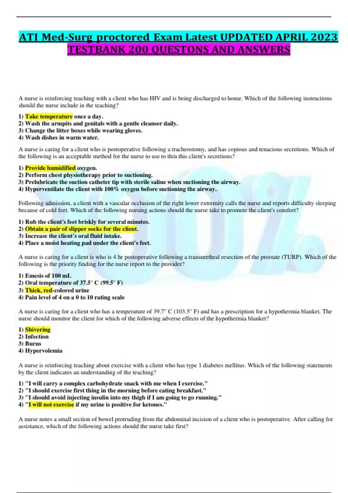 bundle for ATI ADV. MED-SURG 3 480 FINAL EXAM QUESTIONS WITH ANSWERS LATEST UPDATE