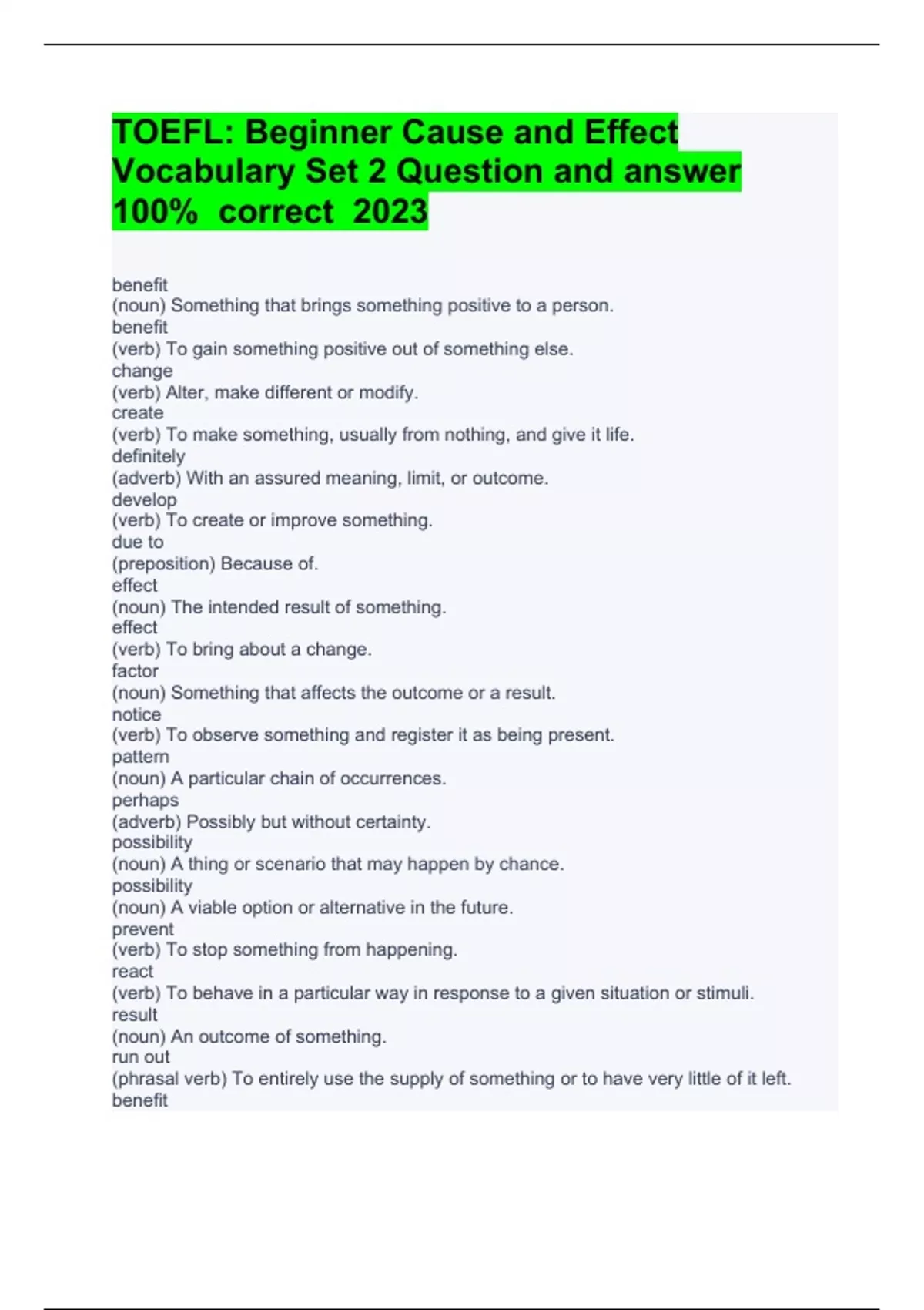 TOEFL IBT 66 QUESTION SPEAKING and answers 100% correct 2023 Exam (elaborations) Toefl Ibt Question and answers rated 100% correct 2023 Exam (elaborations) TOEFL IBT Question and answers rated A+ correct 2023 Exam (elaborations) TOEFL IBT SPEAKING Question with complete solution 2023 Exam (elaborations) TOEFL iBT Vocab Question and answer 2