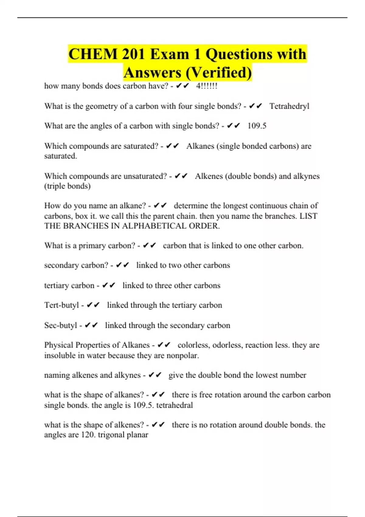 Chemistry 201 Test with Questions and Correct Solutions Exam Bundle