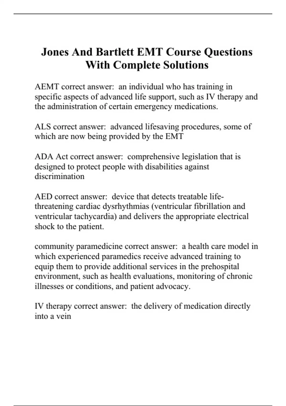 EMS SYSTEMS JONES & BARTLETT TESTS COMPILATION BUNDLE