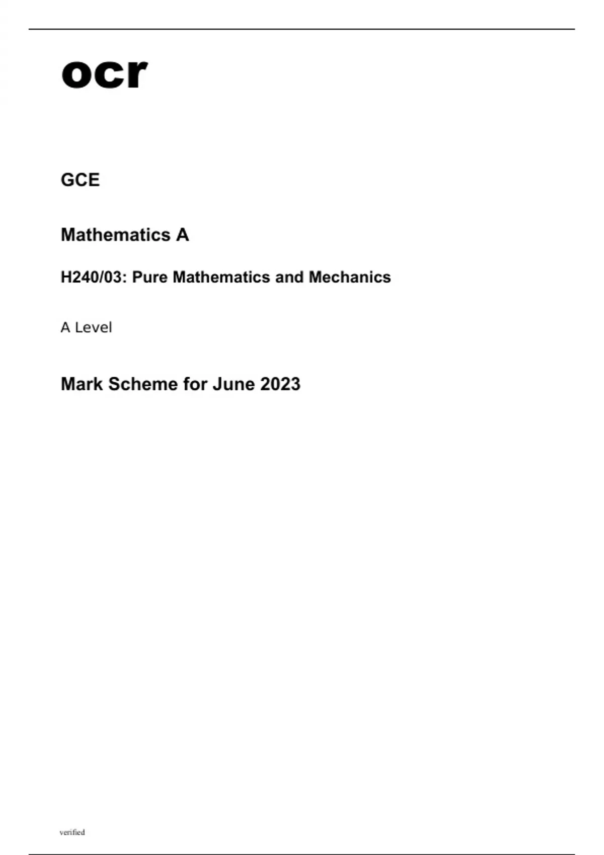 ocr A Level Mathematics A H240/03 June2023 Question Paper and Mark Scheme. ocr A Level Mathematics A H240-03 June2023 Mark Scheme. ocr A Level Mathematics A H240-03 June2023 Question Paper. H240/03 QP and MS