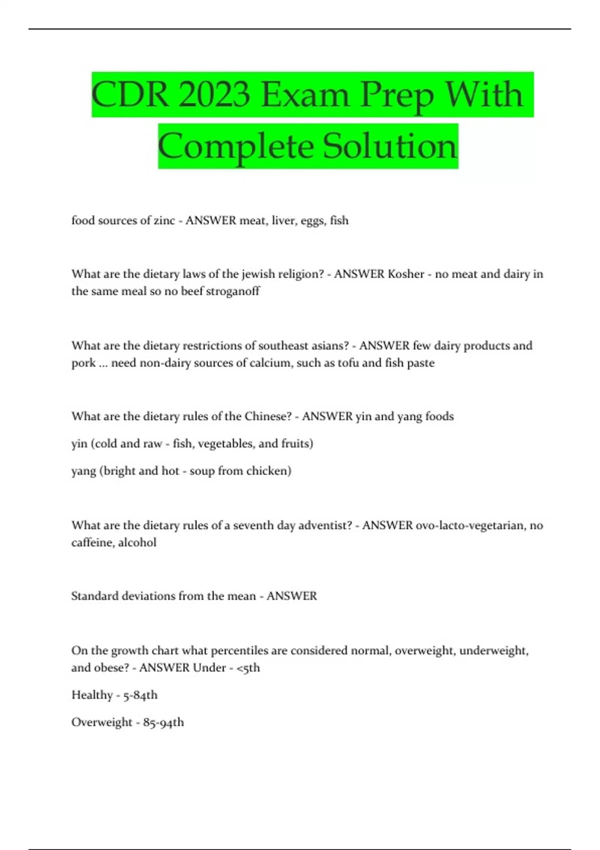 CDR PRACTICE TEST/CDR EXAM PREP WITH COMPLETE SOLUTION PACKAGE DEAL 2023