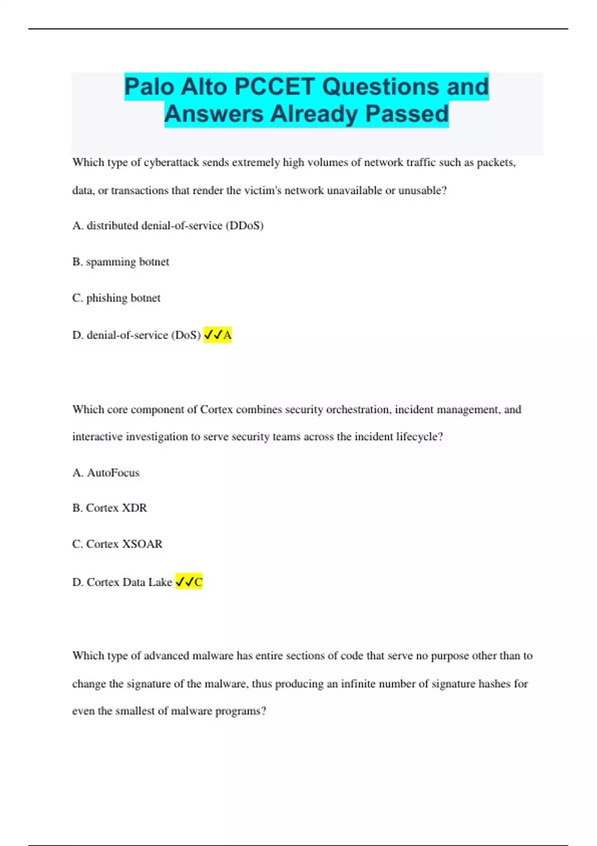 Palo Alto PCCET Bundled Exams Questions and Answers 100% Pass