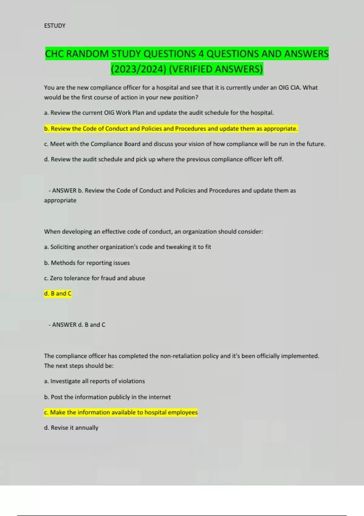 CHC COMBINED EXAMS PACKAGE 100% PASS