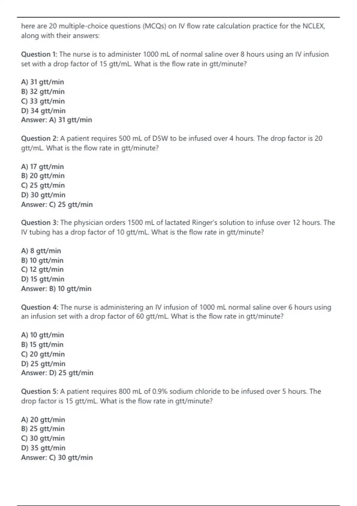 NURSING EXAM NCLEX 100 MCQ QUESTIONS AND ANSWERS FOR PRACTICE IV Flow Rate Calculation fall 2023 Nursing Exam Category Topic Wise 100 MCQ and Answers for Practice on the topic of Health Promotion and Maintenance in nursing fall 2023 NURSING EXAM NCLEX 100 MCQ ANSWERS FOR PRACTICE Intravenous medication dosage calculation Fall 2023 Already Graded A+