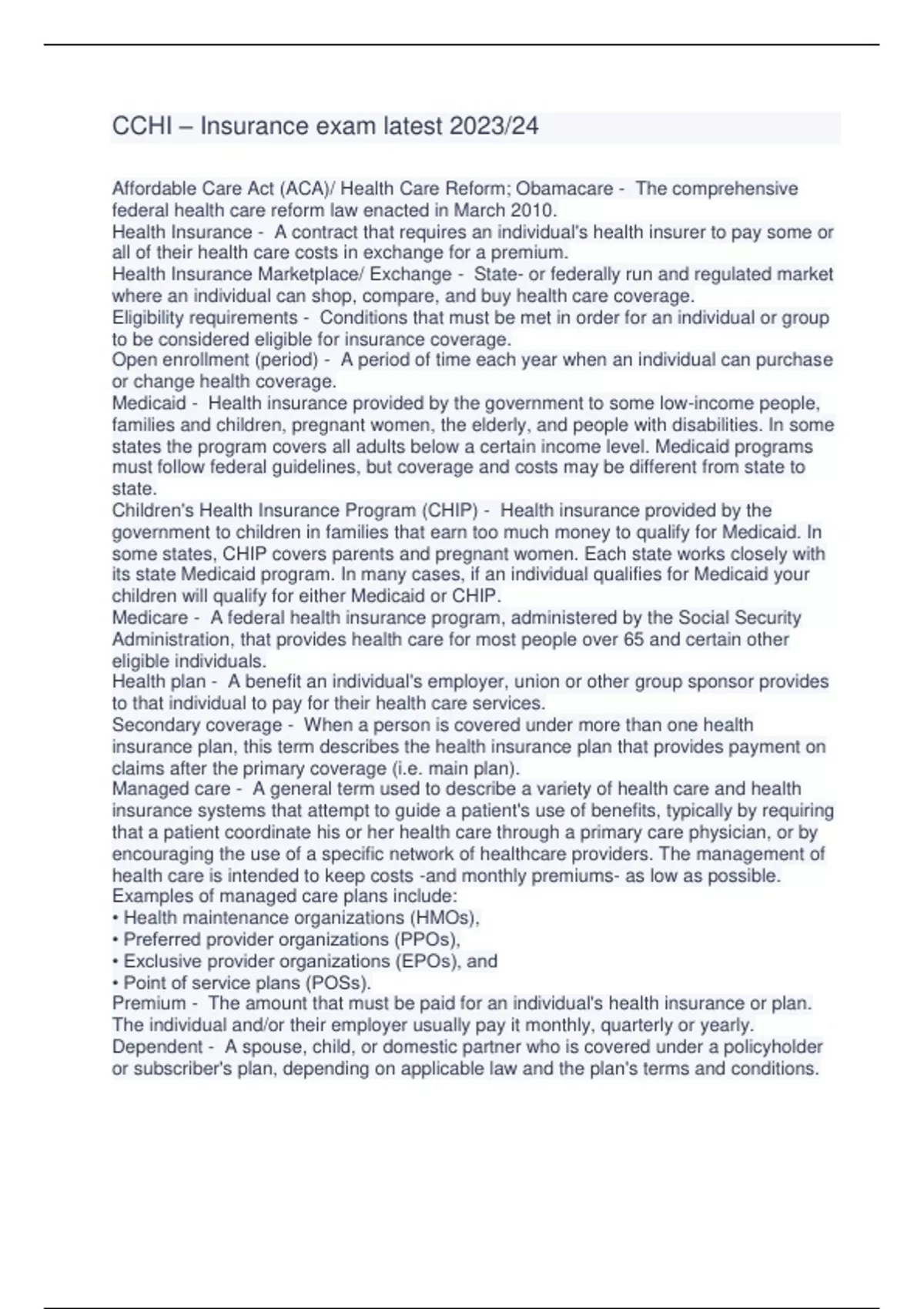 CCHI Practice Test LATEST 2023/24,Standards of Practice - CORE CHI Healthcare Interpreter Exam study set,CCHI Exam | latest 137 Questions and answers | 100% verified,CoreCHI Exam Practice | with latest questions and answers,CCHI – Insurance exam latest 2023/24