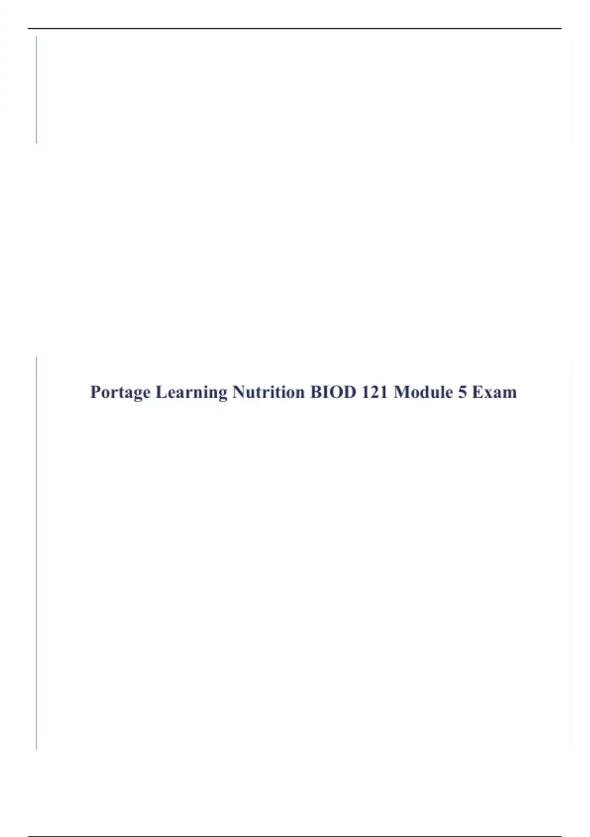 1 Exam (elaborations) Portage Learning BIOD 121 Module 1 Exam 2 Exam (elaborations) Portage Learning BIOD 121 Module 2 Exam 3 Exam (elaborations) Portage Learning Nutrition BIOD 121 Module 3 Exam 4 Exam (elaborations) Portage Learning BIOD 121 Nutrition Module 4 Exam 5 Exam (elaborations) Portage Learning Nutrition BIOD 121 Module 5 Exa