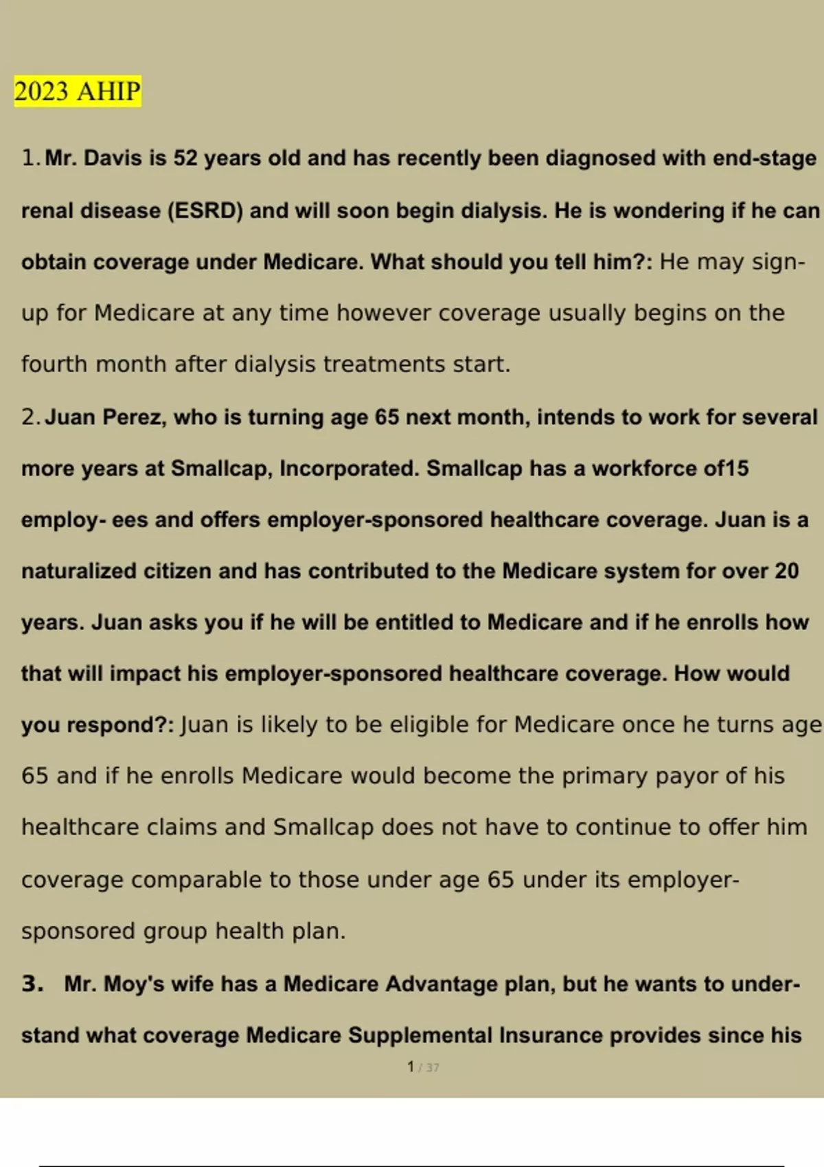 AHIP Final Exam Test FULL BUNDLE AHIP Study Guide Test Newest AHIP Medicare Training Module 1 Final Review