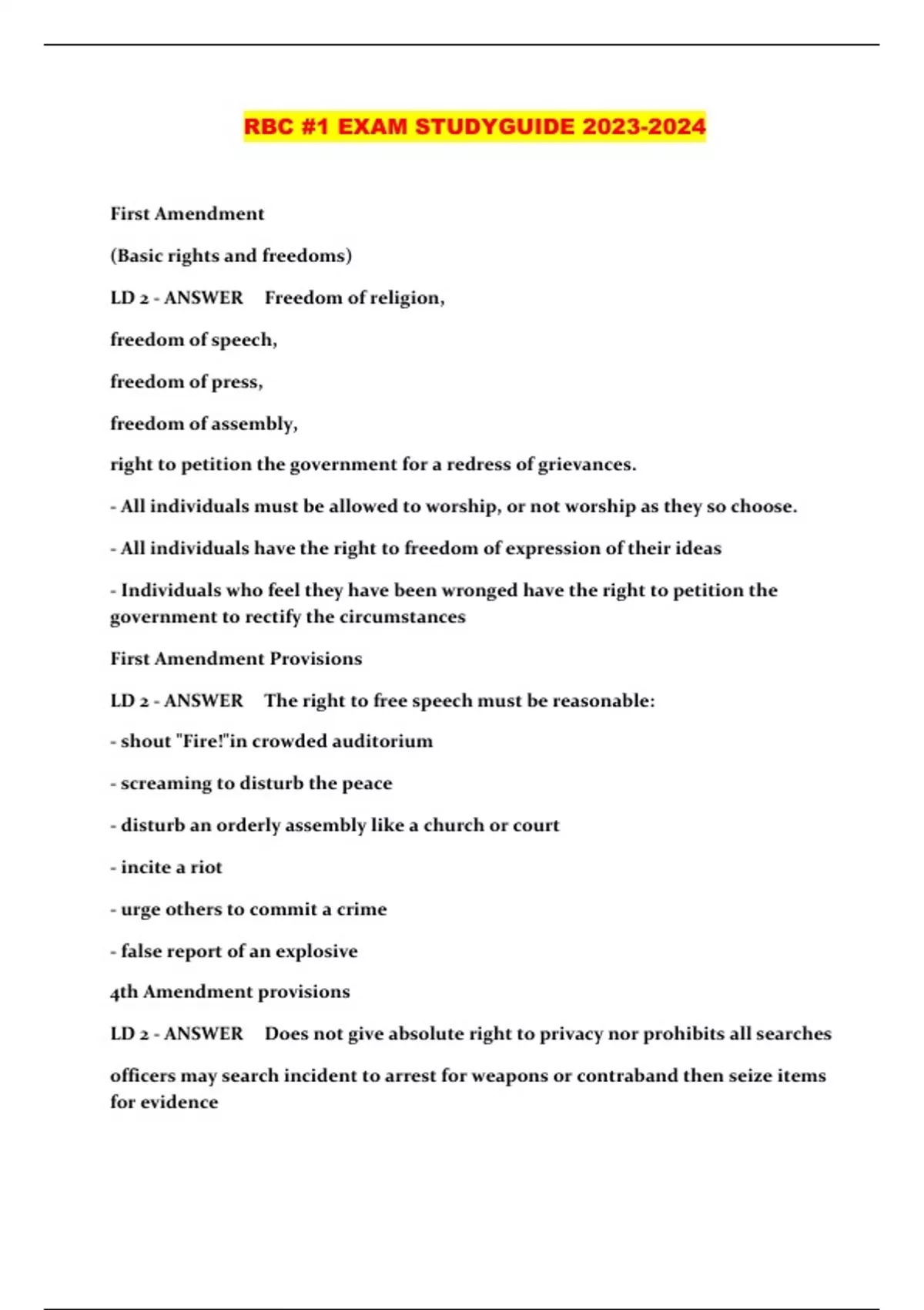 RBC #1 EXAM STUDYGUIDE