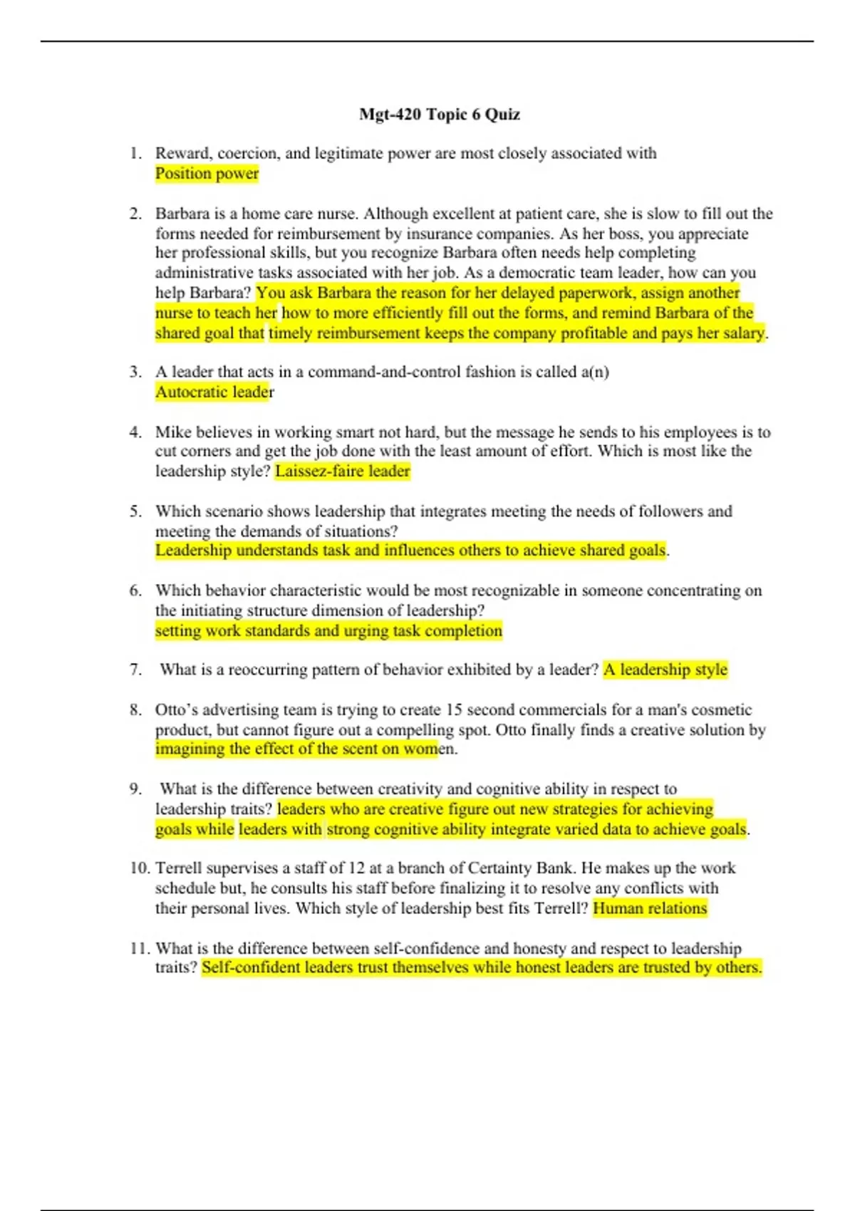 MGT 420 Topic 6 Assignment, Quiz Discussion Grand Canyon