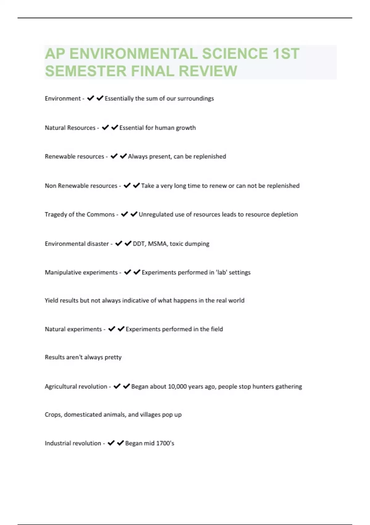 AP Environmental Science Review |492 Questions and Answers(A+ Solution guide)