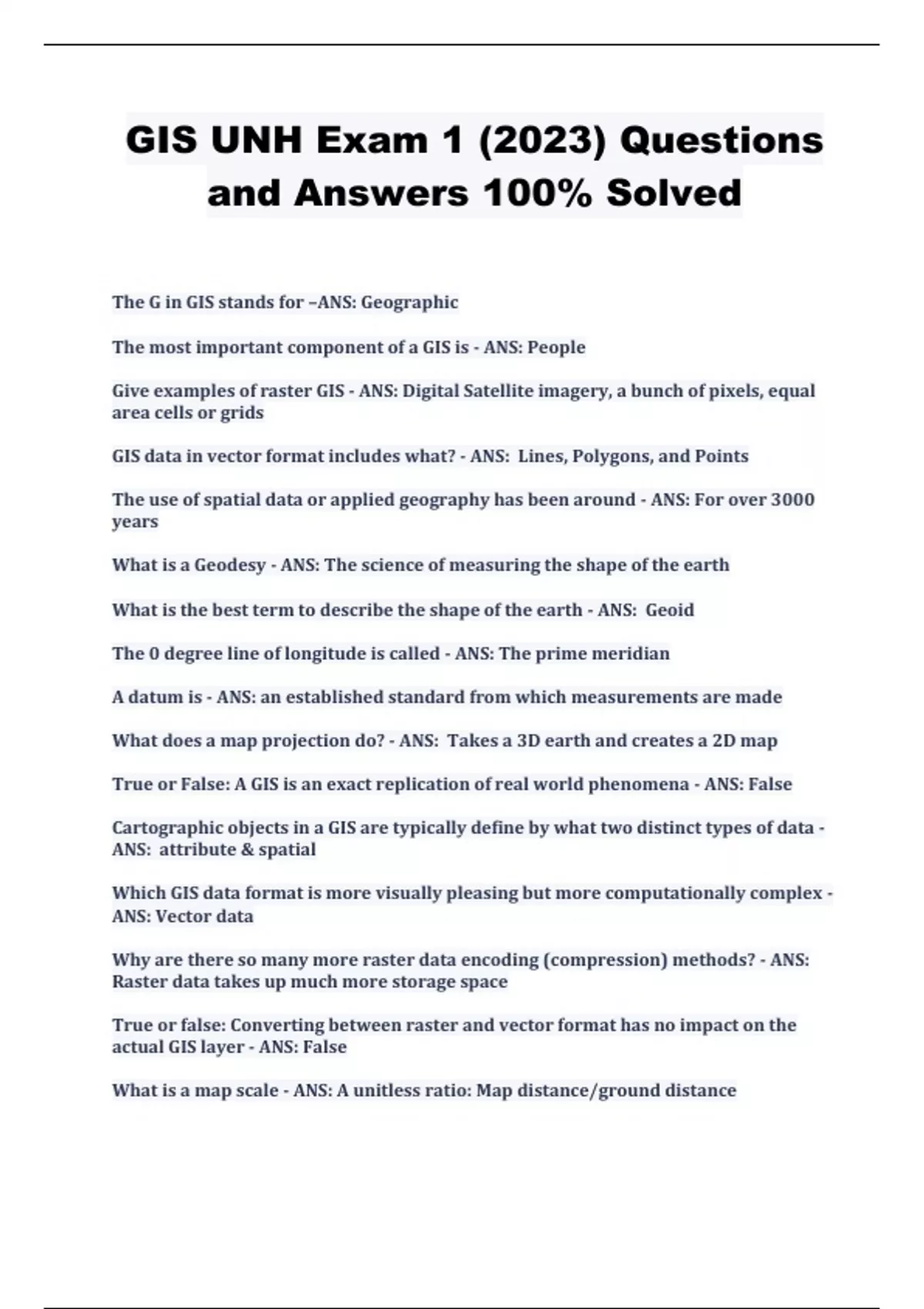 GIS UNH Exam 1 (2023) Questions and Answers 100% Solved