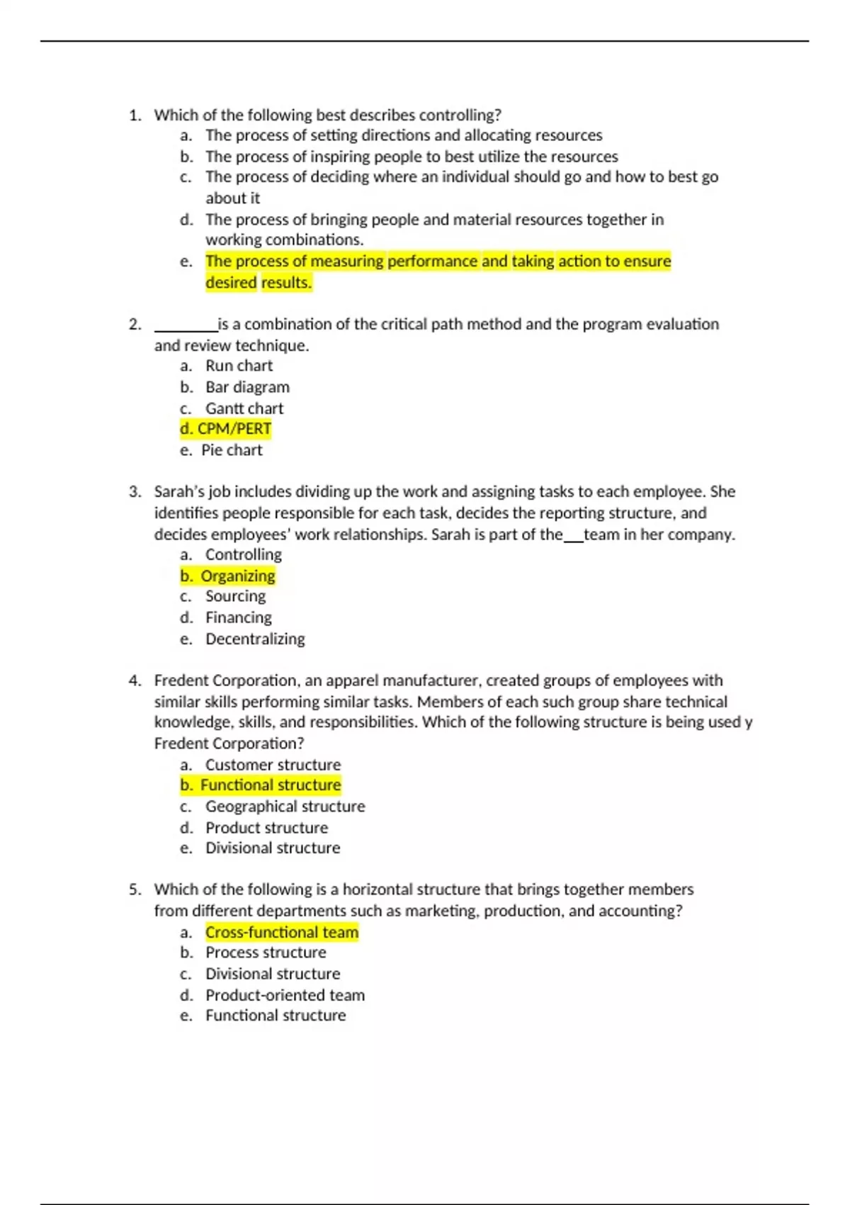 MGT 420 Topic 8 Quiz (v1) 20 Q's and A's Grand Canyon