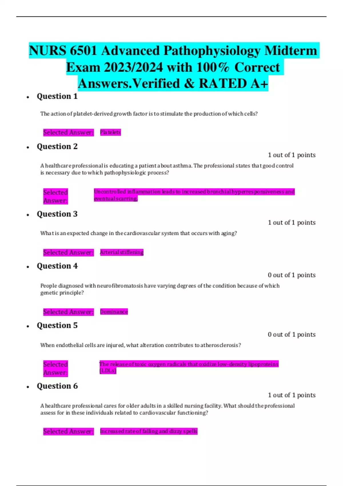 A PACKAGE DEAL FOR NURS 6501 FINAL EXAMS, MIDTERM EXAMS & WEEK 1-7 QUIZ.ALL LATEST UPDATED 2023/100% VERIFIED