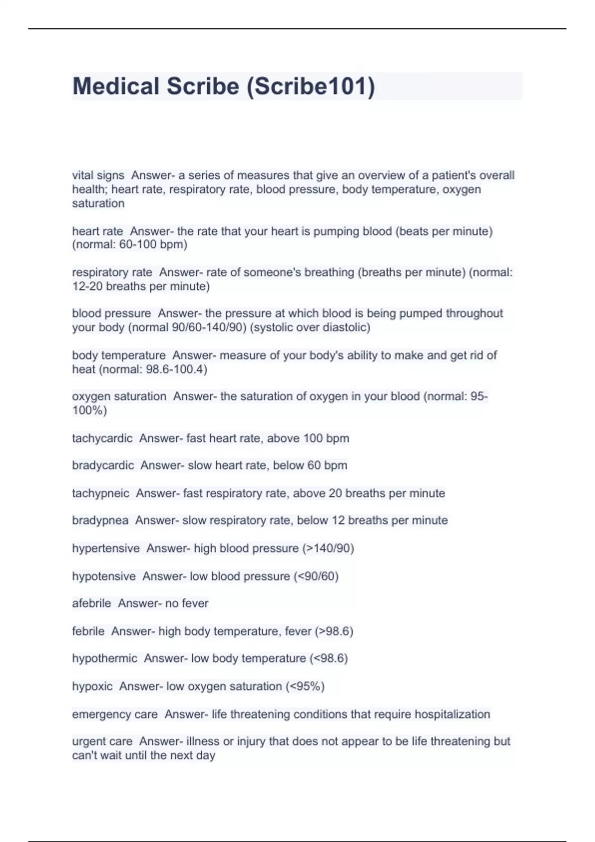Medical Scribe (Scribe101),The Medical Scribe Certificate Examination,Medical Scribe Final Exam (For medical scribe certificate) Solved 100% Correct!!,Medical Scribe Study Guide Q With Correct Ans.,Vituity Scribe Exam,Medical Scribe Test