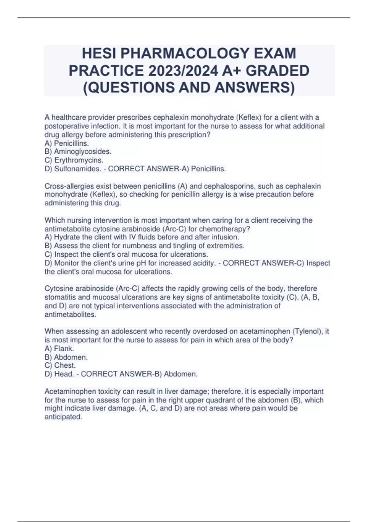 HESI PHARMACOLOGY EXIT EXAM(QUESTIONS AND ANSWERS) Q&A PHARMACOLOGY HESI EXAM 2023 HESI PHARMACOLOGY TEST 2023/2024 HESI PHARMACOLOGY TEST 2023/2024 EXIT EXAM HESI PHARMACOLOGY A GRADED QUESTIONS AND ANSWERS PHARMACOLOGY HESI TEST EXAM PHARMACOLOGY HESI EXAM 2023/2024 HESI PHARMACOLOGY EXAM PRACTICE TEST A GRADED LAT