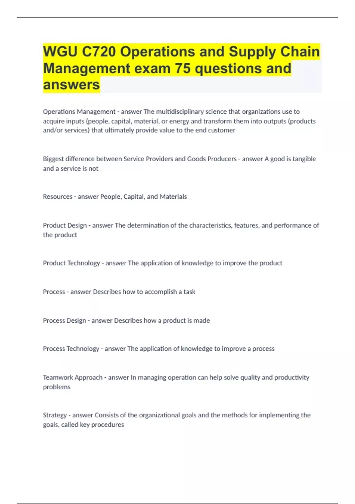 WGU C720 Operations and Supply Chain Management exam |75 questions and answers