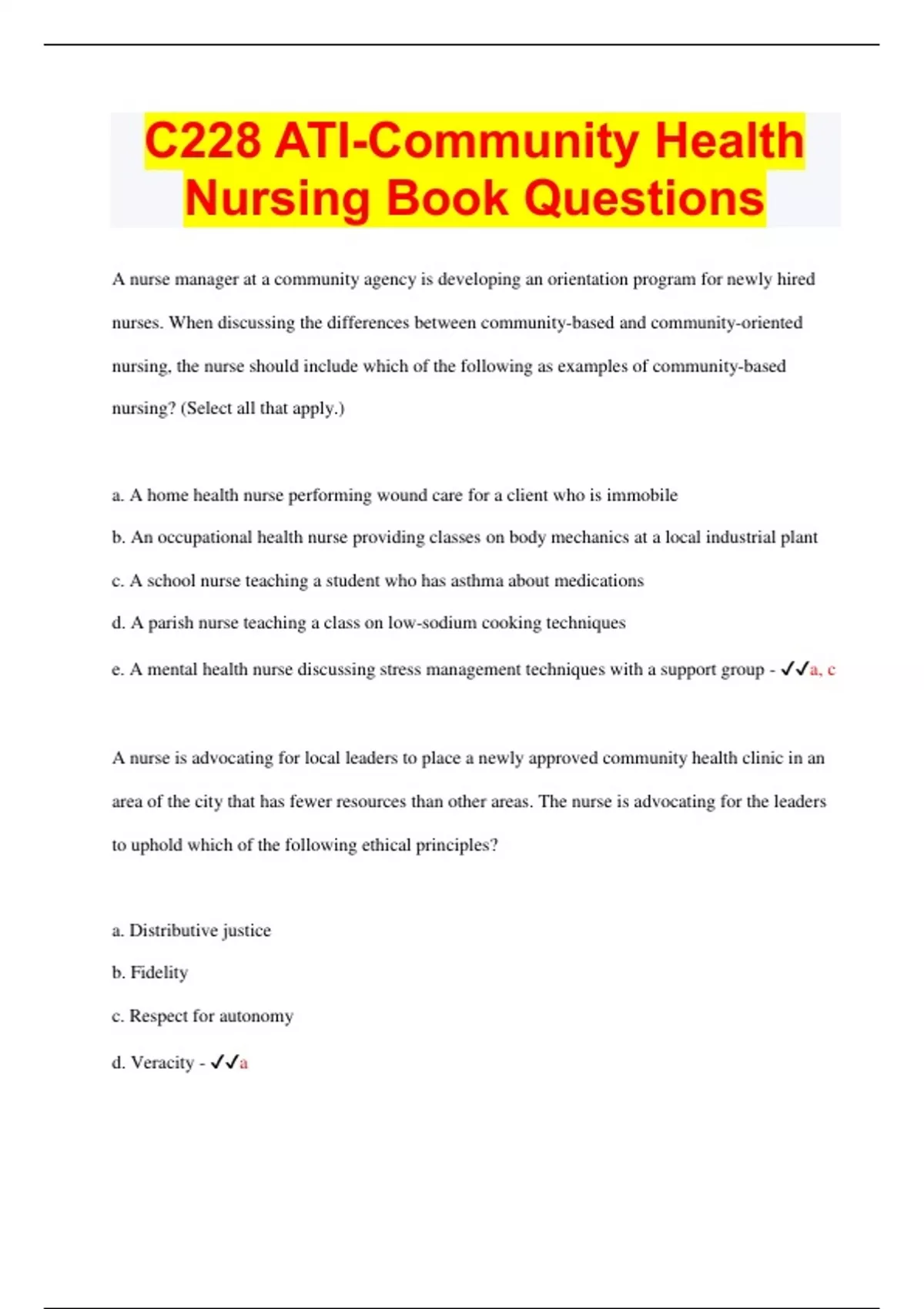 C228 ATI-Community Health Nursing Book Questions | 2023 | Questions with 100% Correct Answers | Updated & Verified