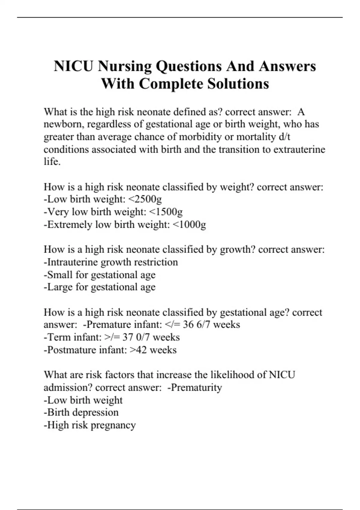 NEONATAL INTENSIVE CARE UNIT ( NICU) TESTS COMPILATION BUNDLE